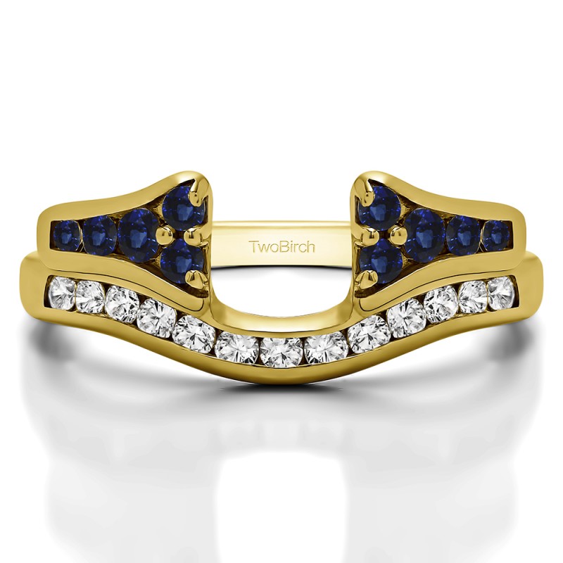 This ring wrap has 23 round, channel set stones with a total combined weight of 0.48 carats. It has a total width of 2 millimeters and features a row of round channel set stones on the band and a cluster of round stones that adorn the center opening. Once you add your solitaire, it will create the look of an engagement ring with a matching channel set band. This ring wrap is made to fit a round solitaire from 1 carat up to 1.5 carat, or a marquise solitaire from 0.25 carat up to 0.5 carat, or a princess solitaire from 1 carat up to 1.5 carat.