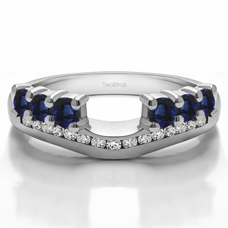 This ring wrap has 21 stones in total. It features a mix of round and round prong set stones with a total combined weight of 0.49 carats. It has a total width of 2 millimeters and features a row of round channel set stones on the band and six round prong set stones. Once you add your solitaire, it will create the look of an engagement ring with a matching channel set band. This ring wrap is made to fit a round solitaire from 1 carat up to 1.5 carat, or a marquise solitaire from 0.25 carat up to 0.5 carat, or a princess solitaire from 1 carat up to 1.5 carat.