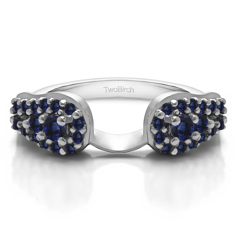 This ring wrap has 32 round, prong set stones with a total combined weight of 0.49 carats. It has a total width of 1.9 millimeters and features a stunning fishtail design with prong set stones in the center. This ring wrap is made to fit a round solitaire from 0.75 carat up to 2 carat, or a marquise solitaire from 0.25 carat up to 0.5 carat, or a princess solitaire from 0.75 carat up to 1 carat.