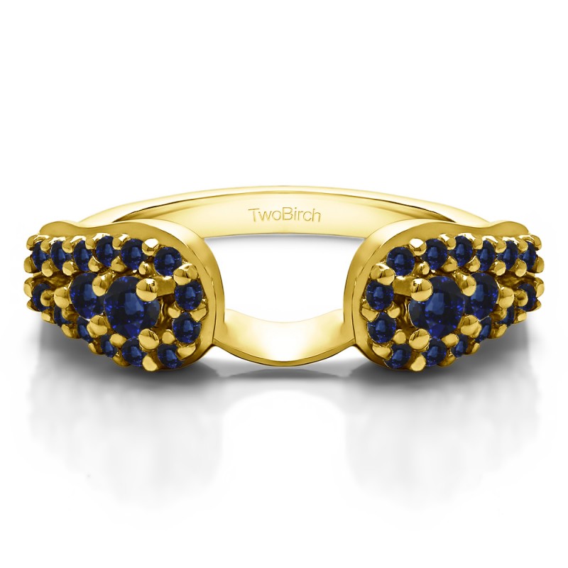 This ring wrap has 32 round, prong set stones with a total combined weight of 0.49 carats. It has a total width of 1.9 millimeters and features a stunning fishtail design with prong set stones in the center. This ring wrap is made to fit a round solitaire from 0.75 carat up to 2 carat, or a marquise solitaire from 0.25 carat up to 0.5 carat, or a princess solitaire from 0.75 carat up to 1 carat.