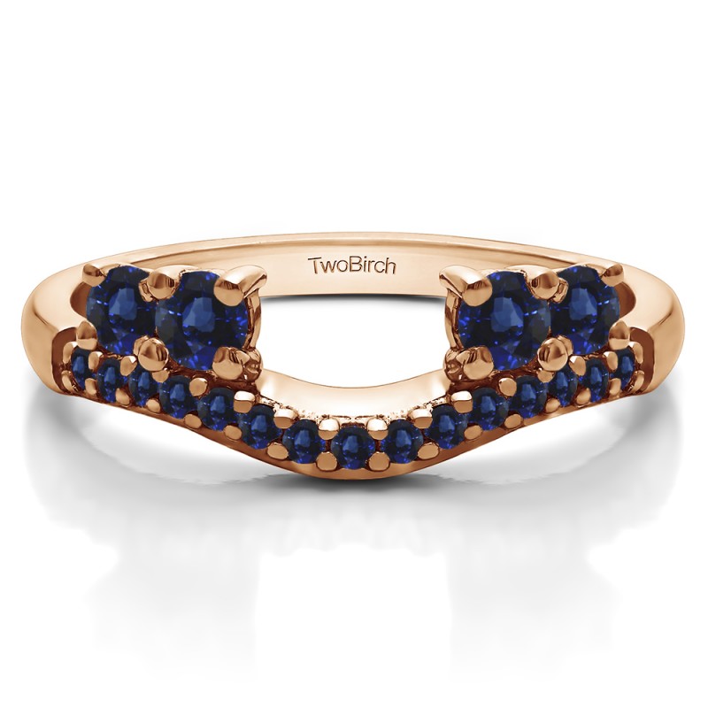 This ring wrap has 19 round, prong set stones with a total combined weight of 0.49 carats. It has a total width of 2 millimeters and features a contoured band with shared progs and four graduated stones, prong set. When combined with a solitaire, it created a perfectly matched bridal set consisting of curved ring and engagement ring. This ring wrap is made to fit a round solitaire from 0.5 carat up to 2 carat, or a marquise solitaire from 0.25 carat up to 0.5 carat, or a princess solitaire from 0.5 carat up to 1 carat.