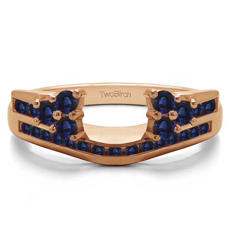This ring wrap has 25 stones in total. It features a mix of round and round prong set stones with a total combined weight of 0.5 carats. It has a total width of 2 millimeters and features a channel set row of stones on the band, with a cluster of round stones surrounding the center stone, once you add your solitaire. This ring wrap is made to fit a round solitaire from 0.75 carat up to 1.5 carat, or a marquise solitaire from 0.25 carat up to 0.5 carat, or a princess solitaire from 0.25 carat up to 0.5 carat.