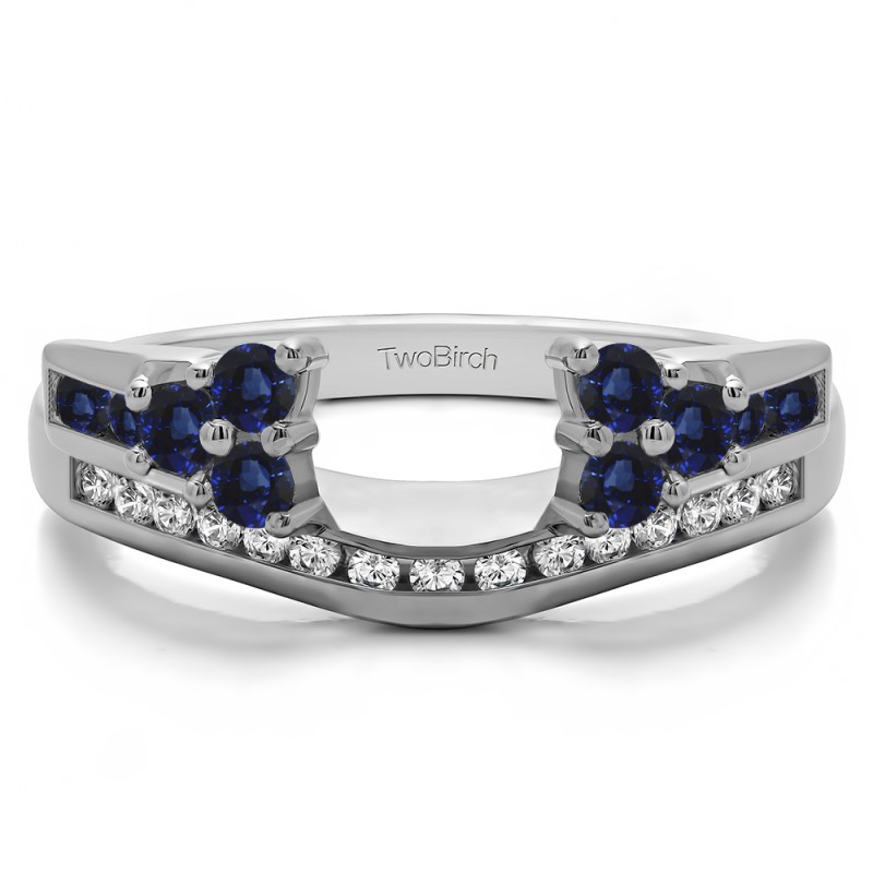 This ring wrap has 25 stones in total. It features a mix of round and round prong set stones with a total combined weight of 0.5 carats. It has a total width of 2 millimeters and features a channel set row of stones on the band, with a cluster of round stones surrounding the center stone, once you add your solitaire. This ring wrap is made to fit a round solitaire from 0.75 carat up to 1.5 carat, or a marquise solitaire from 0.25 carat up to 0.5 carat, or a princess solitaire from 0.25 carat up to 0.5 carat.