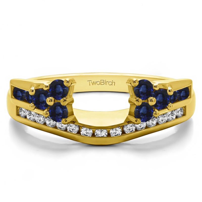 This ring wrap has 25 stones in total. It features a mix of round and round prong set stones with a total combined weight of 0.5 carats. It has a total width of 2 millimeters and features a channel set row of stones on the band, with a cluster of round stones surrounding the center stone, once you add your solitaire. This ring wrap is made to fit a round solitaire from 0.75 carat up to 1.5 carat, or a marquise solitaire from 0.25 carat up to 0.5 carat, or a princess solitaire from 0.25 carat up to 0.5 carat.