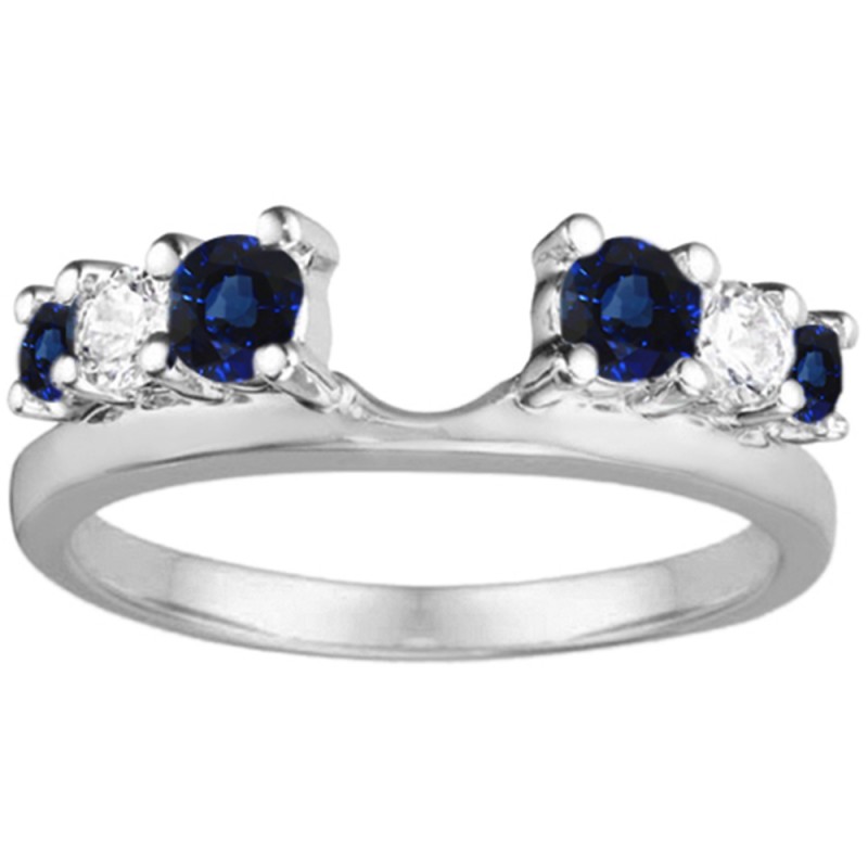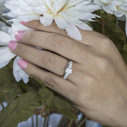 This ring wrap has 6 round, prong set stones with a total combined weight of 0.5 carats. It has a total width of 2 millimeters and has six stones, graduated in size. This ring wrap is made to fit a round solitaire from 0.25 carat up to 1 carat, or a marquise solitaire from 0.25 carat up to 0.5 carat, or a princess solitaire from 0.3 carat up to 1 carat.