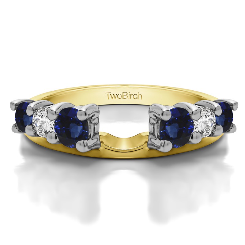 This ring wrap has 6 round, prong set stones with a total combined weight of 0.75 carats. It has a total width of 2 millimeters and has six stones, graduated in size. This ring wrap is made to fit a round solitaire from 0.25 carat up to 1 carat, or a marquise solitaire from 0.25 carat up to 0.5 carat, or a princess solitaire from 0.3 carat up to 1 carat.