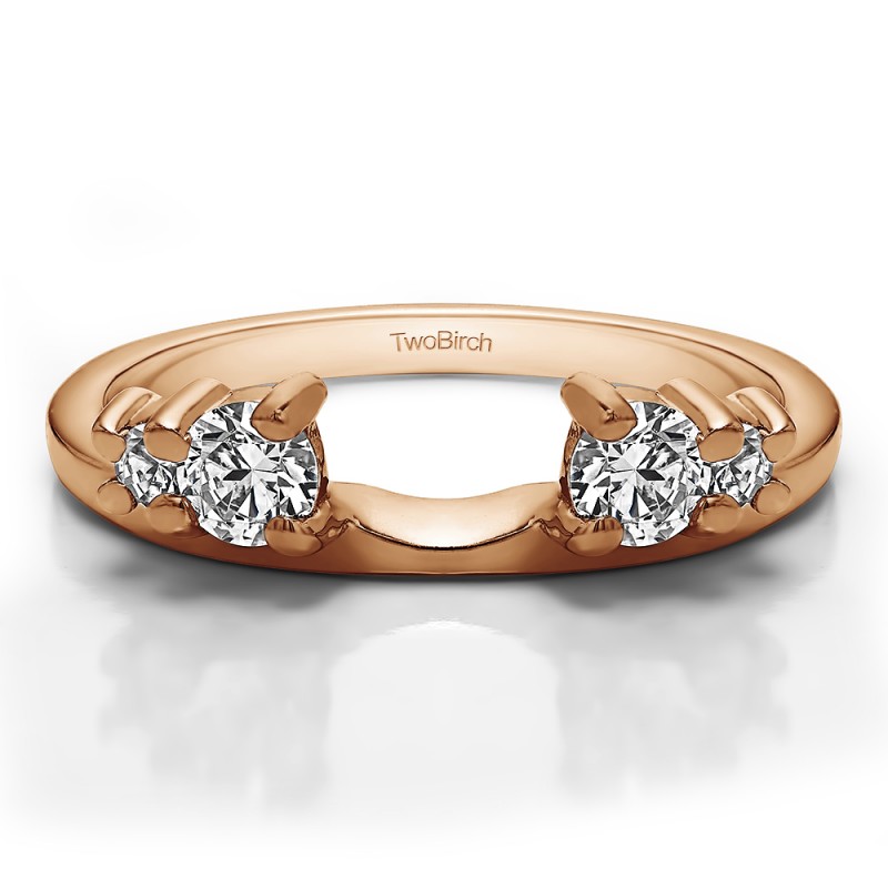 This ring wrap has 4 round, prong set stones with a total combined weight of 0.4 carats. It has a total width of 1.7 millimeters and features graduated stones set with shared prongs and stunning high polish finish. This ring wrap is made to fit a round solitaire from 0.5 carat up to 1 carat, or a marquise solitaire from 0.75 carat up to 0.75 carat, or a princess solitaire from 0.5 carat up to 1 carat.