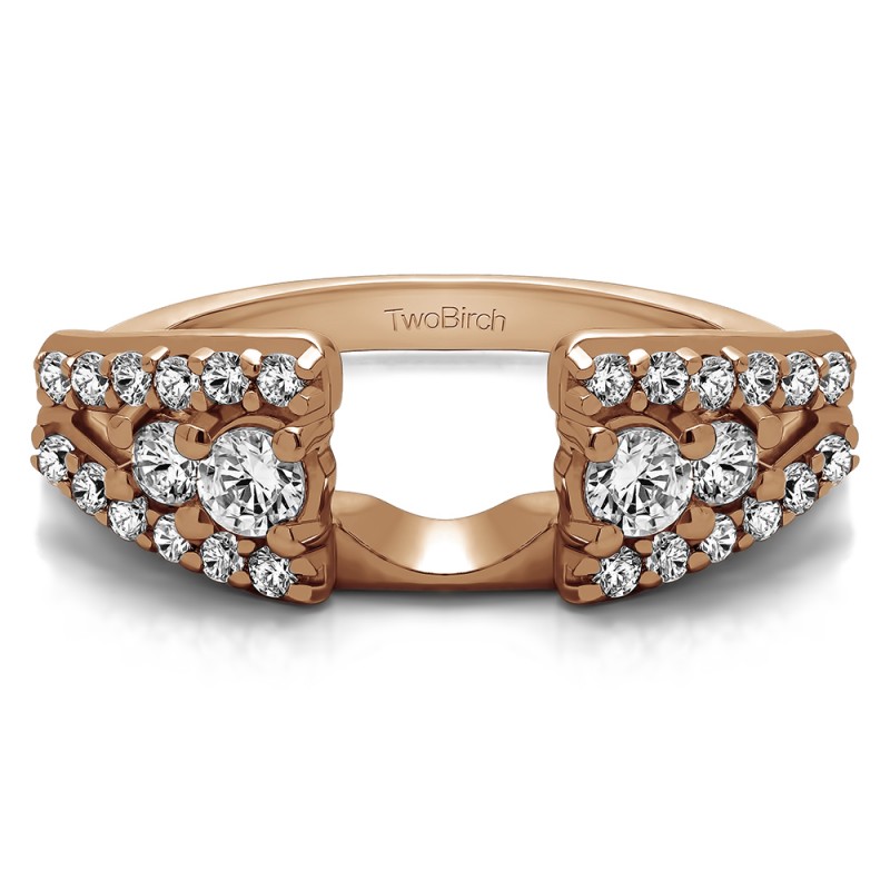 This ring wrap has 28 round, prong set stones with a total combined weight of 0.44 carats. It has a total width of 2 millimeters and features a classic high polish finish. This ring wrap is made to fit a round solitaire from 0.5 carat up to 1.5 carat, or a marquise solitaire from 0.5 carat up to 1.5 carat, or a princess solitaire from 0.5 carat up to 1.5 carat.
