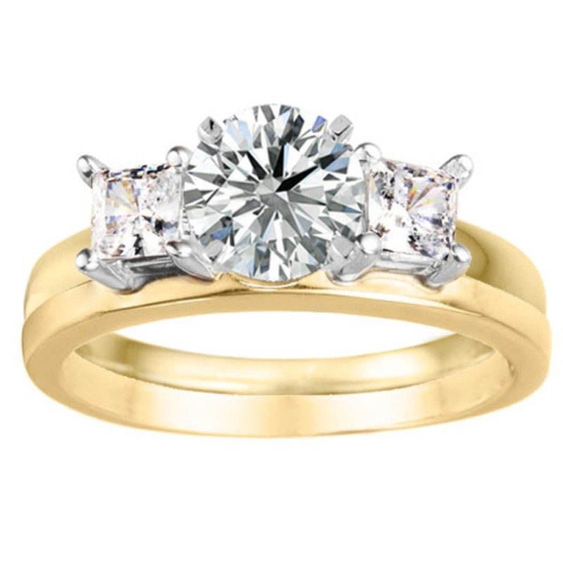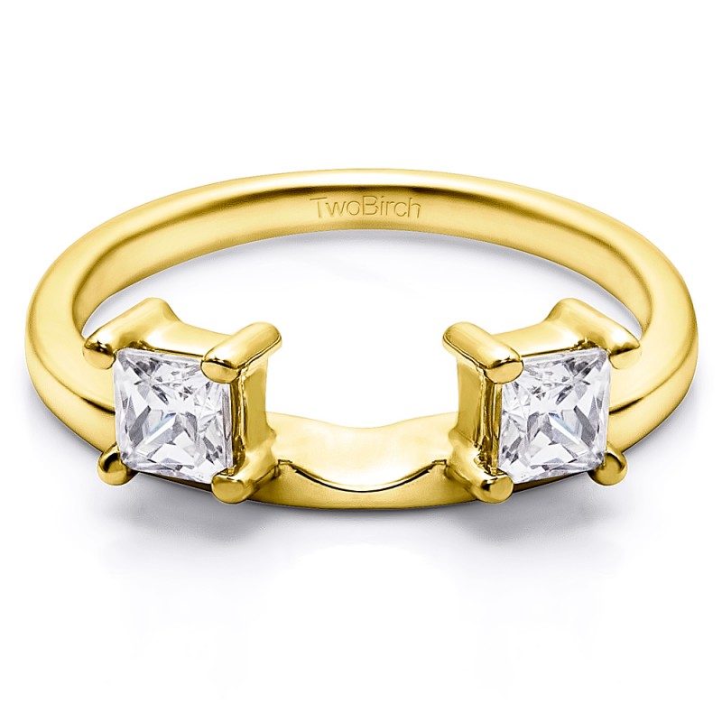 This ring wrap has 2 Princess, prong set stones with a total combined weight of 0.5 carats. It has a total width of 2 millimeters. Since this ring wrap has one stone each side of the center, it will create a three stone ring look once you place your solitaire in the center. This ring wrap is made to fit a round solitaire from 0.75 carat up to 1 carat, or a marquise solitaire from 0.25 carat up to 0.5 carat, or a princess solitaire from 0.5 carat up to 1 carat.