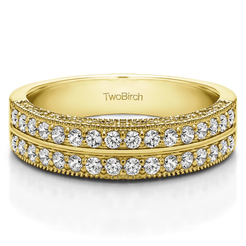 0.48 Carat Double Row Vintage Filigree Millgrained Wedding Band in Yellow Gold
