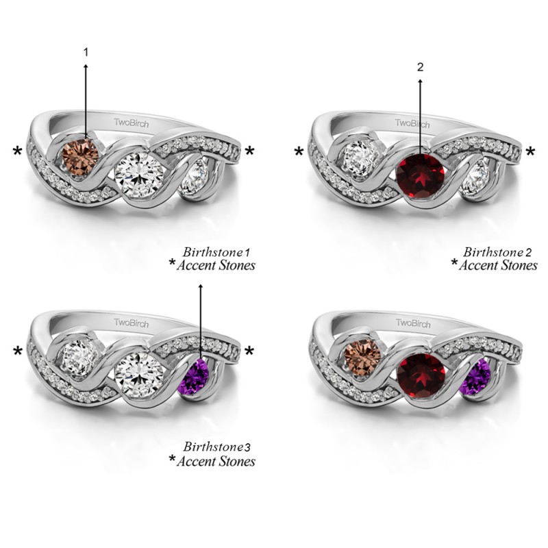 | Key Product Features | Select from drop down menu to choose where each birthstone will go. You can also make the selections for metal color, metal type, side stone from the drop down menu. |