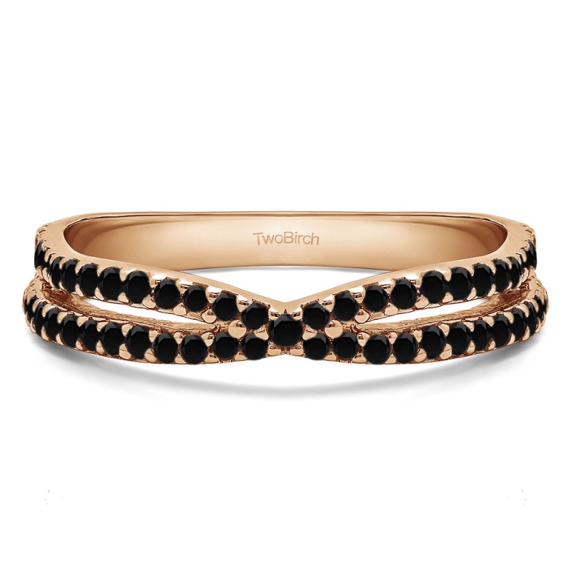 This wedding ring features 61 round prong set stones with a 2 millimeter wide band. The total combined carat weight of the ring is 0.46 carats. This ring has a criss cross design with a single row of stones accenting the design. This wedding ring weighs approximately 6.24 grams.