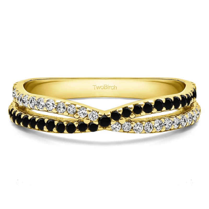 This wedding ring features 61 round prong set stones with a 2 millimeter wide band. The total combined carat weight of the ring is 0.46 carats. This ring has a criss cross design with a single row of stones accenting the design. This wedding ring weighs approximately 6.24 grams.