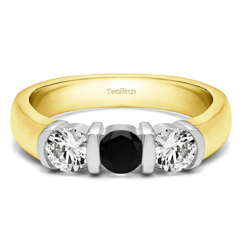 This wedding ring features 3 round bar set stones with a 2 millimeter wide band. The total combined carat weight of the ring is 0.48 carats. It features bar set round stones that are large enough to make it an anniversary band, worn on its own. This wedding ring weighs approximately 3.97 grams.