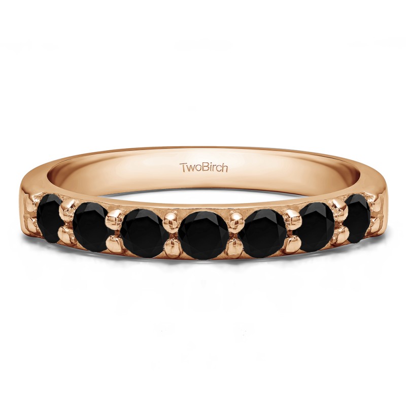This wedding ring features 7 round prong set stones with a 2 millimeter wide band. The total combined carat weight of the ring is 0.49 carats. Round brilliant cut stones are set in common prongs, making it both stunning and secure. This wedding ring weighs approximately 4.79 grams.