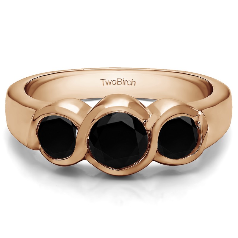 This wedding ring features 3 round bezel set stones with a 2 millimeter wide band. The total combined carat weight of the ring is 0.75 carats. It has a high profile, so it can easily be worn on its own as an anniversary wedding band or with an engagement ring. This wedding ring weighs approximately 6.75 grams.