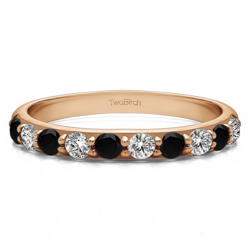 This wedding ring features 10 round prong set stones with a 2 millimeter wide band. The total combined carat weight of the ring is 1 carats. It has shared prongs, set low, making it perfect to wear on its own or to accompany any style engagement ring. This wedding ring weighs approximately 4.32 grams.