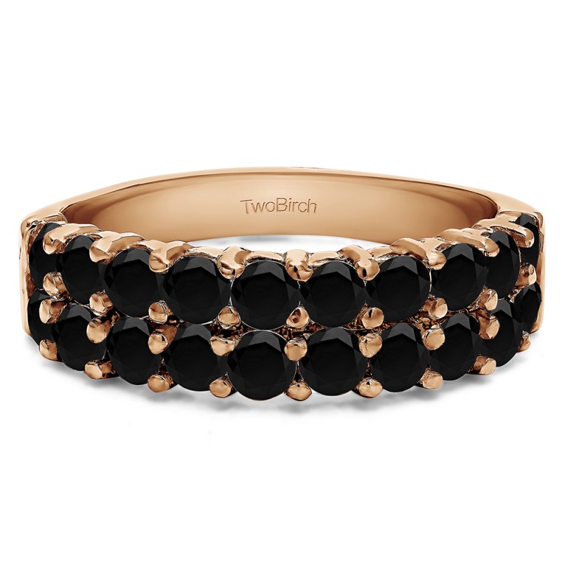 This wedding ring features 20 round prong set stones with a 2 millimeter wide band. The total combined carat weight of the ring is 1 carats. This ring has a double row of shared prong stones. This wedding ring weighs approximately 4.79 grams.