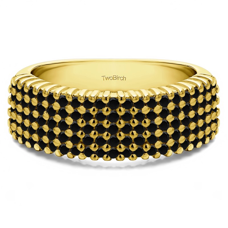 This wedding ring features 100 round prong set stones with a 2 millimeter wide band. The total combined carat weight of the ring is 1 carats. It has three rows of shared prong stones. This wedding ring weighs approximately 7.35 grams.