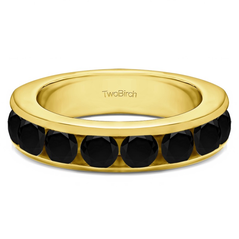 This wedding ring features 8 round channel set stones with a 2 millimeter wide band. The total combined carat weight of the ring is 2 carats. It has a high polish finish. This wedding ring weighs approximately 8.62 grams.