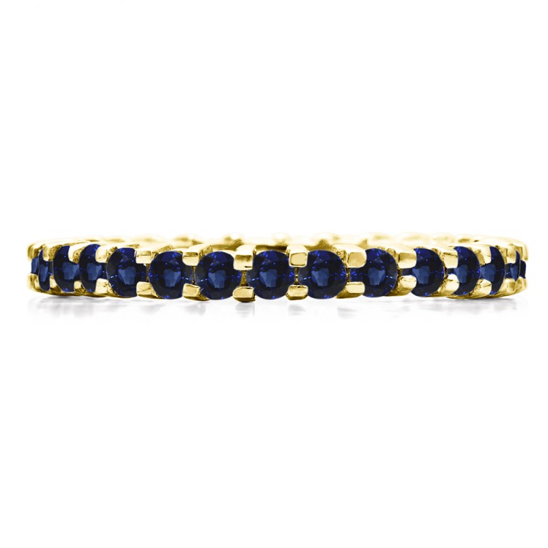 This eternity band is classic and timeless, featuring a continual band of round stones, set with double shared prongs. This makes for the perfect anniversary or wedding band.