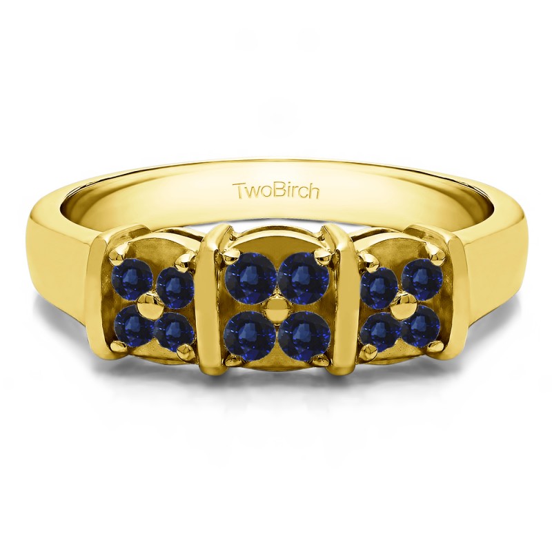 This wedding ring features 12 round bar set stones with a 2 millimeter wide band. The total combined carat weight of the ring is 0.31 carats. It is set in a way that gives the stones the appearance of a flower. This wedding ring weighs approximately 4.45 grams.