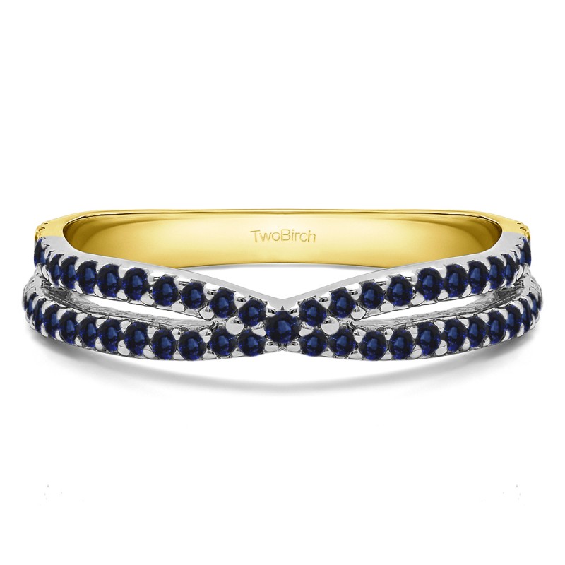 This wedding ring features 61 round prong set stones with a 2 millimeter wide band. The total combined carat weight of the ring is 0.46 carats. This ring has a criss cross design with a single row of stones accenting the design. This wedding ring weighs approximately 6.24 grams.