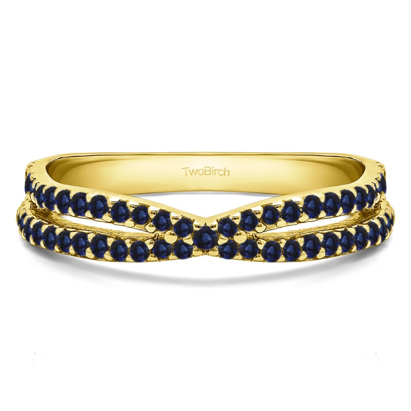 This wedding ring features 61 round prong set stones with a 2 millimeter wide band. The total combined carat weight of the ring is 0.46 carats. This ring has a criss cross design with a single row of stones accenting the design. This wedding ring weighs approximately 6.24 grams.