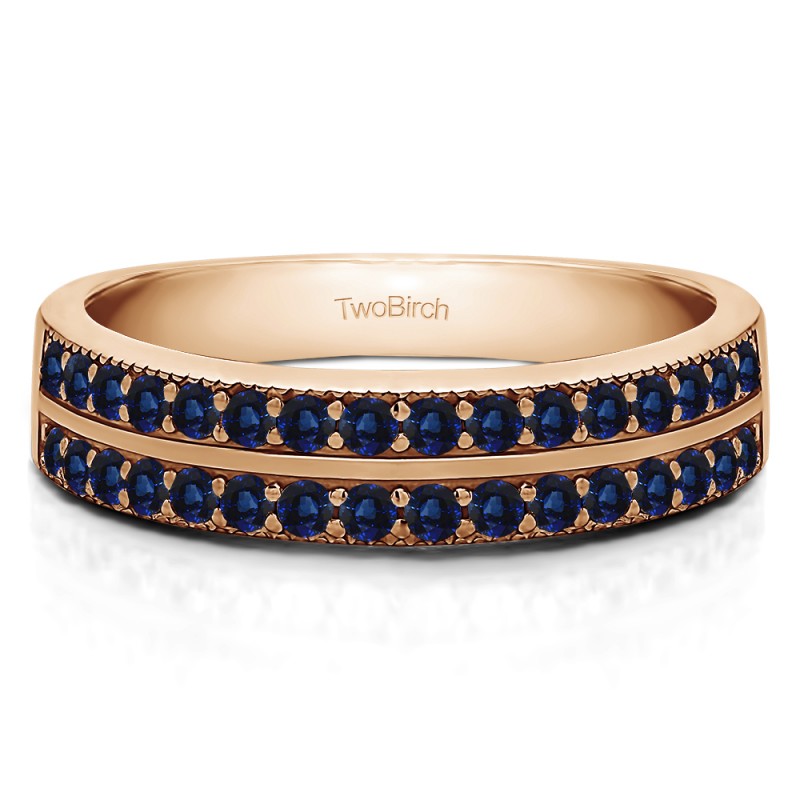 This wedding ring features 32 round prong set stones with a 2 millimeter wide band. The total combined carat weight of the ring is 0.48 carats. It has a double row of fishtail set stones. This wedding ring weighs approximately 6.62 grams.