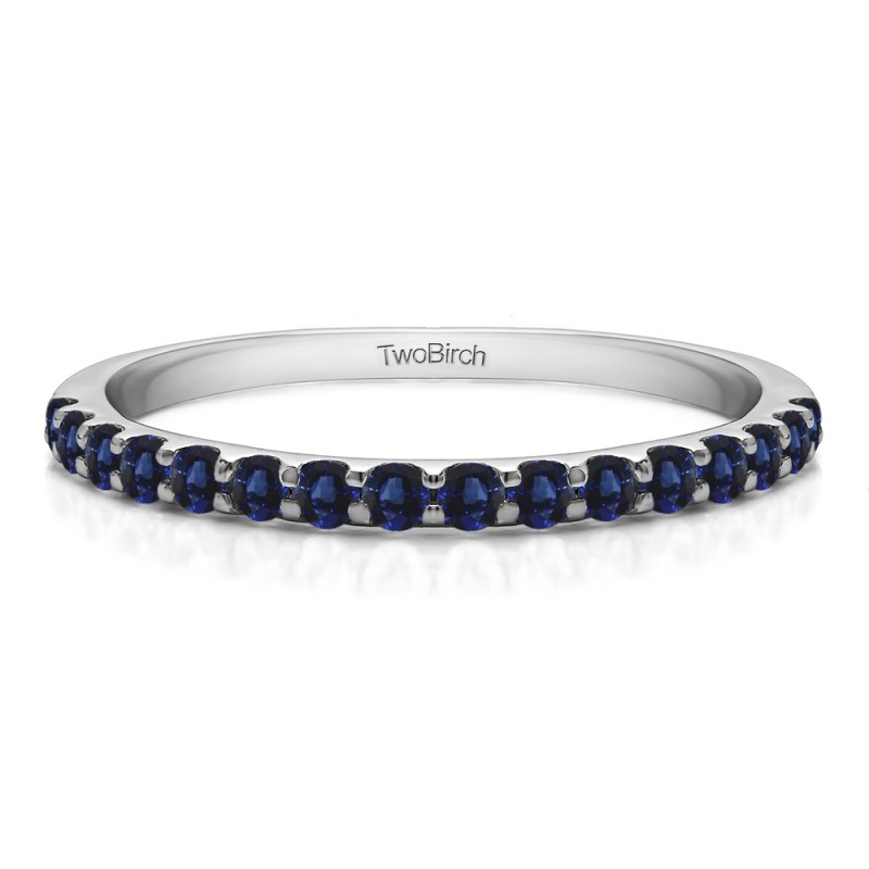 This wedding ring features 16 round prong set stones with a 2 millimeter wide band. The total combined carat weight of the ring is 0.48 carats. It has a high polish finish. This wedding ring weighs approximately 2.24 grams.
