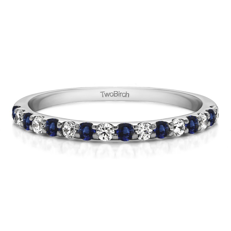 This wedding ring features 16 round prong set stones with a 2 millimeter wide band. The total combined carat weight of the ring is 0.48 carats. It has a high polish finish. This wedding ring weighs approximately 2.24 grams.