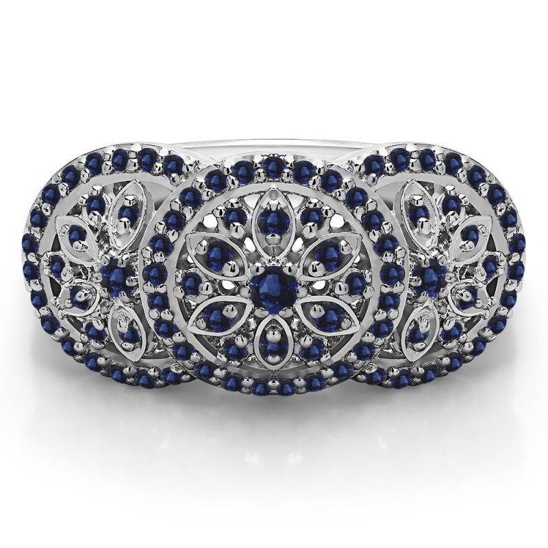 This wedding ring features 86 round prong set stones with a 2 millimeter wide band. The total combined carat weight of the ring is 0.49 carats. The bezels in this design are millgrained. This wedding ring weighs approximately 8.16 grams.