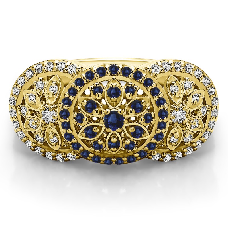 This wedding ring features 86 round prong set stones with a 2 millimeter wide band. The total combined carat weight of the ring is 0.49 carats. The bezels in this design are millgrained. This wedding ring weighs approximately 8.16 grams.