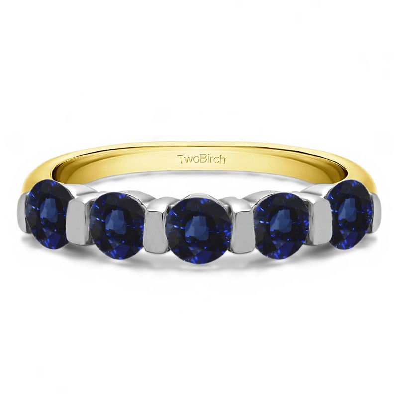 This wedding ring features 5 round bar set stones with a 2 millimeter wide band. The total combined carat weight of the ring is 0.5 carats. Stones in this ring are set by a high polish shared bar. This wedding ring weighs approximately 3.99 grams.