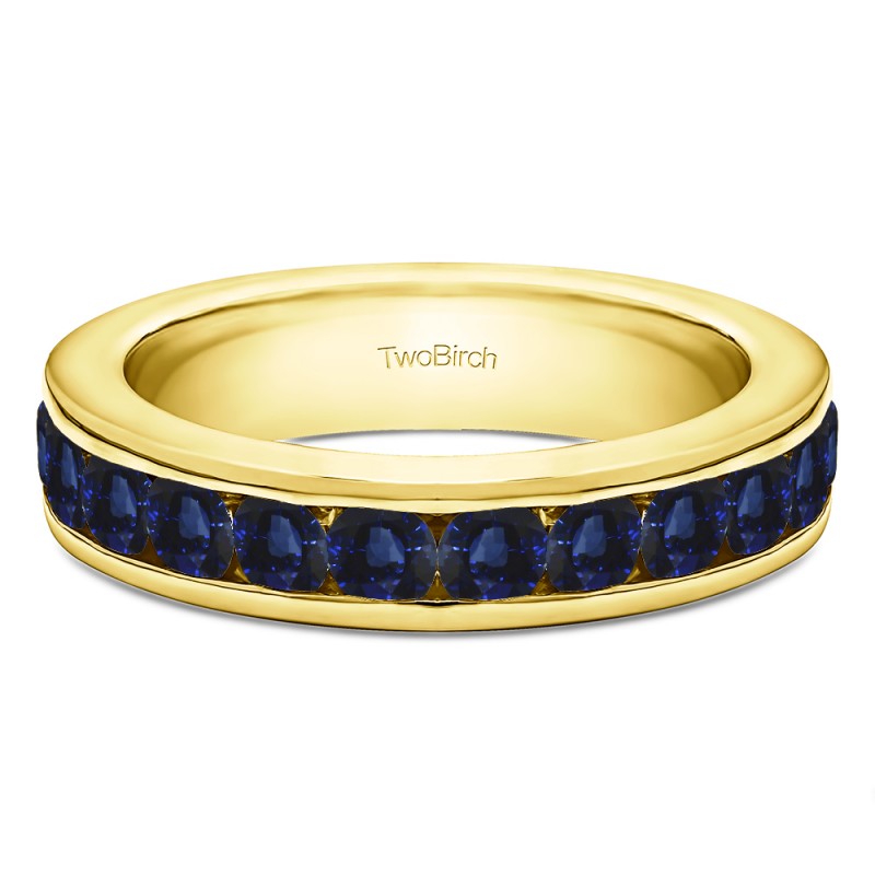 This wedding ring features 12 round channel set stones with a 2 millimeter wide band. The total combined carat weight of the ring is 0.5 carats. It has a high polish finish. This wedding ring weighs approximately 3.52 grams.