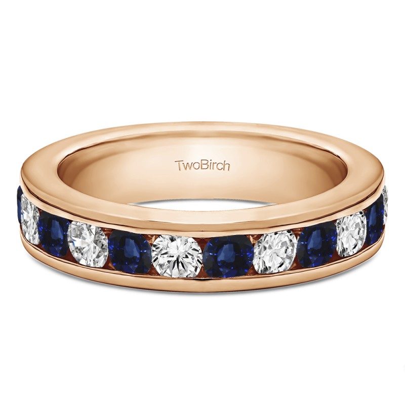 This wedding ring features 12 round channel set stones with a 2 millimeter wide band. The total combined carat weight of the ring is 0.5 carats. It has a high polish finish. This wedding ring weighs approximately 3.52 grams.