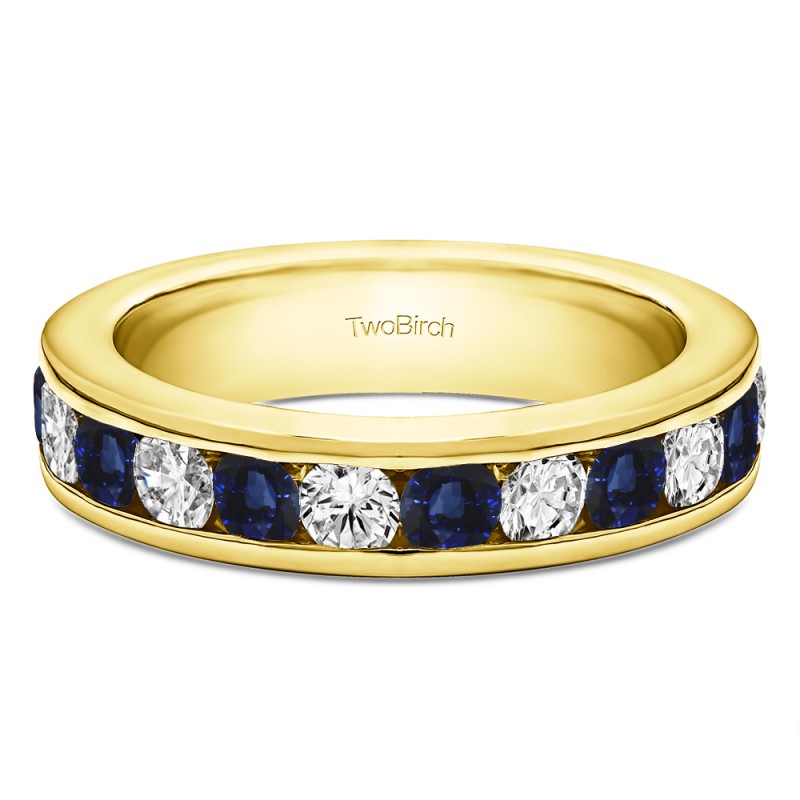 This wedding ring features 12 round channel set stones with a 2 millimeter wide band. The total combined carat weight of the ring is 0.5 carats. It has a high polish finish. This wedding ring weighs approximately 3.52 grams.