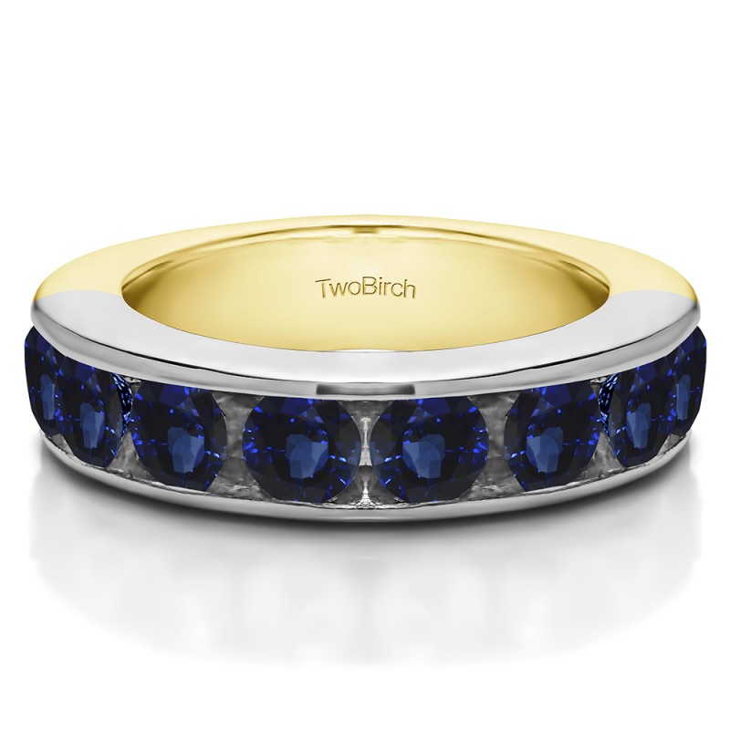 This wedding ring features 10 round channel set stones with a 2 millimeter wide band. The total combined carat weight of the ring is 1 carats. It has a channel set design with millgrained edges. This wedding ring weighs approximately 5.32 grams.