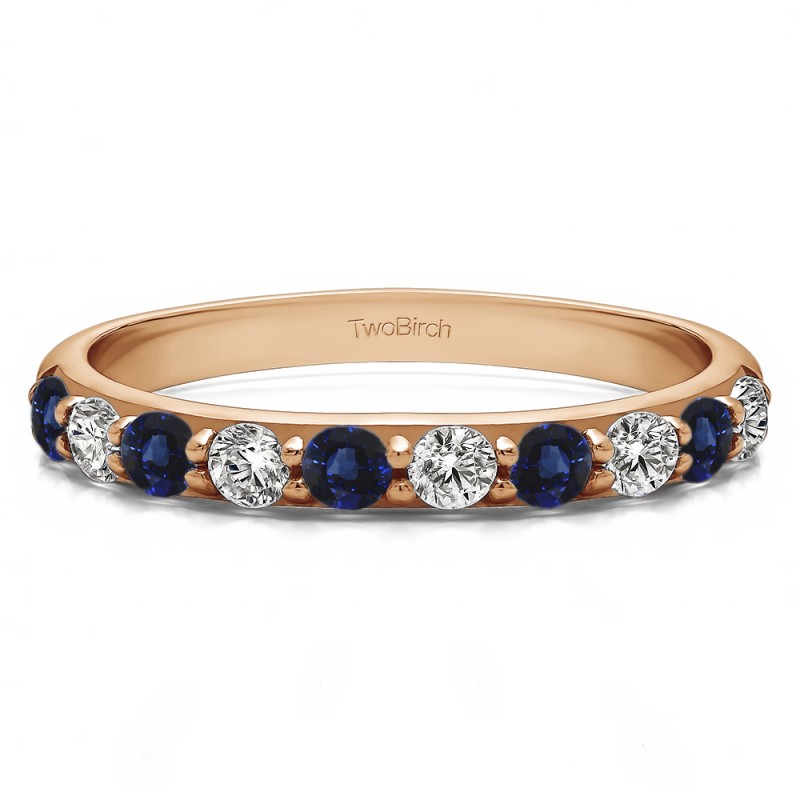 This wedding ring features 10 round prong set stones with a 2 millimeter wide band. The total combined carat weight of the ring is 1 carats. It has shared prongs, set low, making it perfect to wear on its own or to accompany any style engagement ring. This wedding ring weighs approximately 4.32 grams.