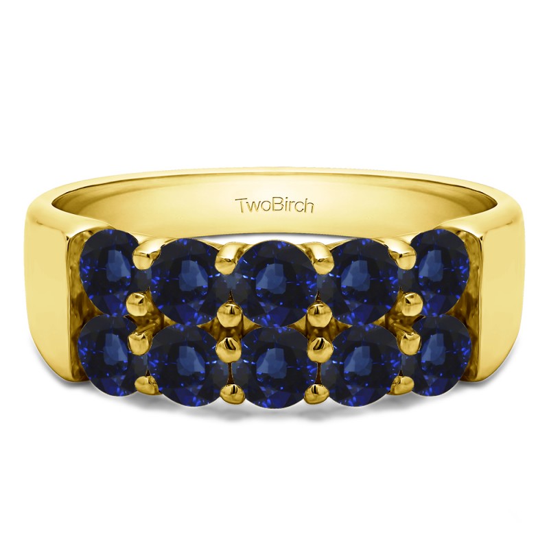 This wedding ring features 10 round prong set stones with a 2 millimeter wide band. The total combined carat weight of the ring is 1 carats. This ring has a double row of shared prong stones. This wedding ring weighs approximately 6.55 grams.