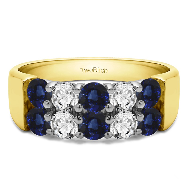 This wedding ring features 10 round prong set stones with a 2 millimeter wide band. The total combined carat weight of the ring is 1 carats. This ring has a double row of shared prong stones. This wedding ring weighs approximately 6.55 grams.