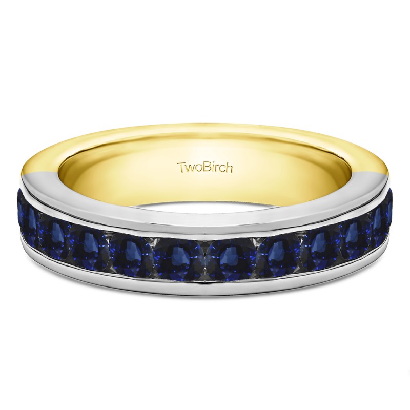 This wedding ring features 12 round channel set stones with a 2 millimeter wide band. The total combined carat weight of the ring is 1 carats. It has a high polish finish. This wedding ring weighs approximately 4.64 grams.