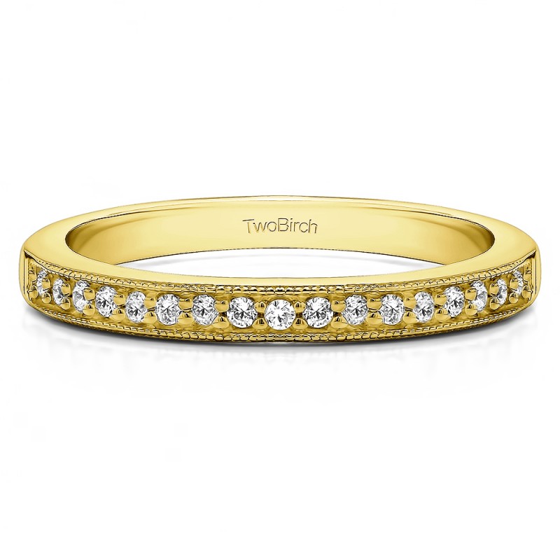 0.26 Carat Seventeen Stone Millgrained Pave Set Wedding Ring in Yellow Gold