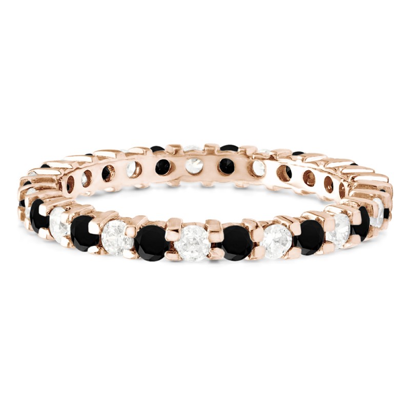 Black and White Stone Stackable 2.2mm Double Shared Prong Eternity Ring