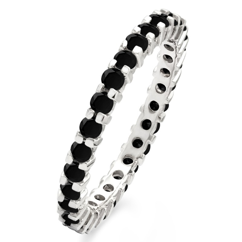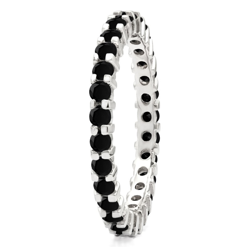 Black Stone Stackable 2.2mm Double Shared Prong Eternity Ring