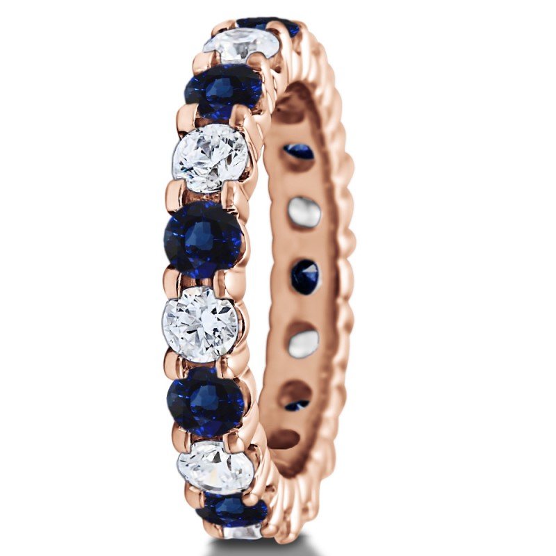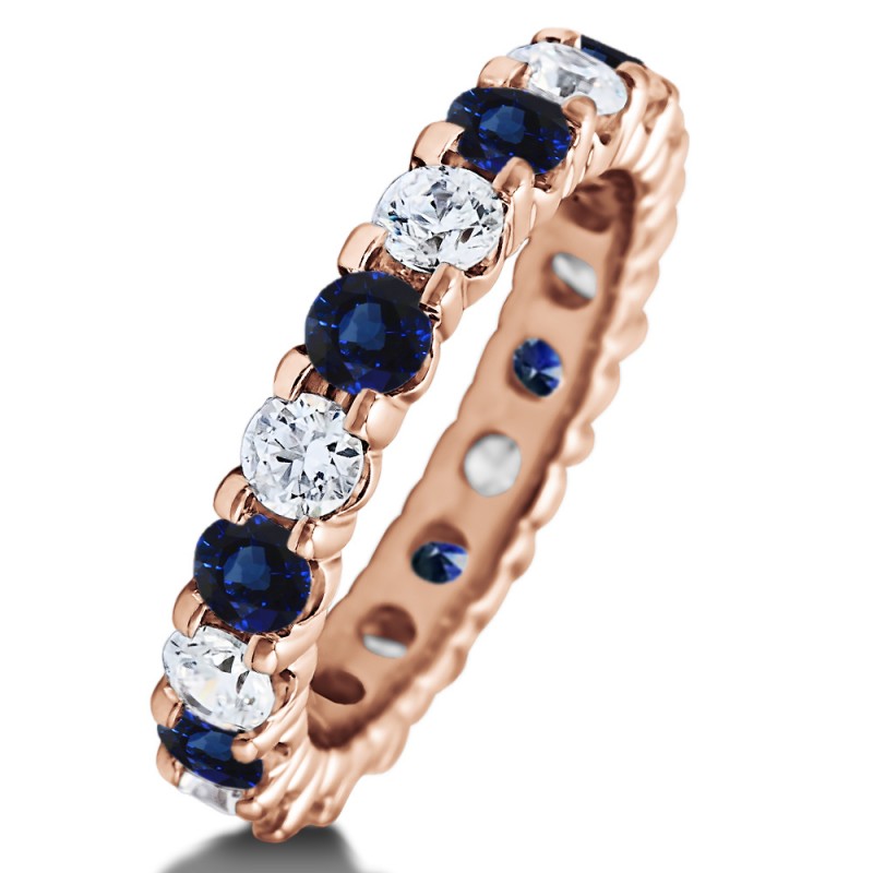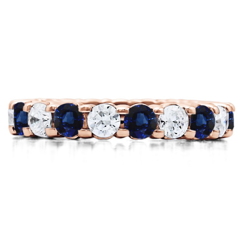 Diamond and Sapphire Stackable 3.1mm Double Shared Prong Eternity Ring