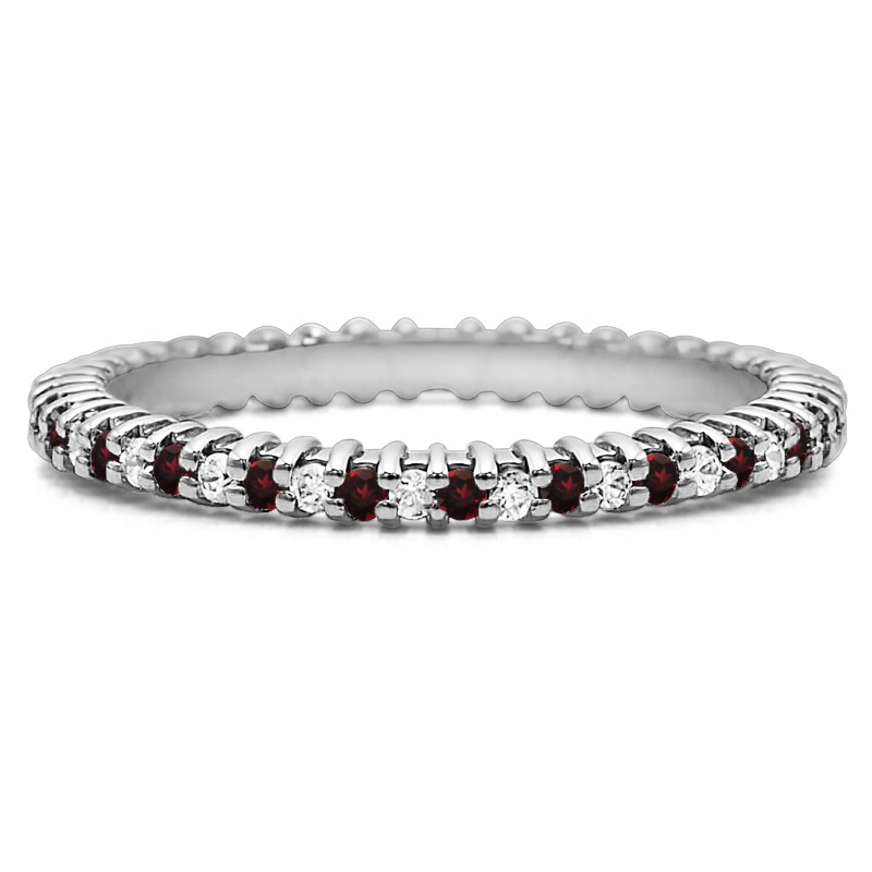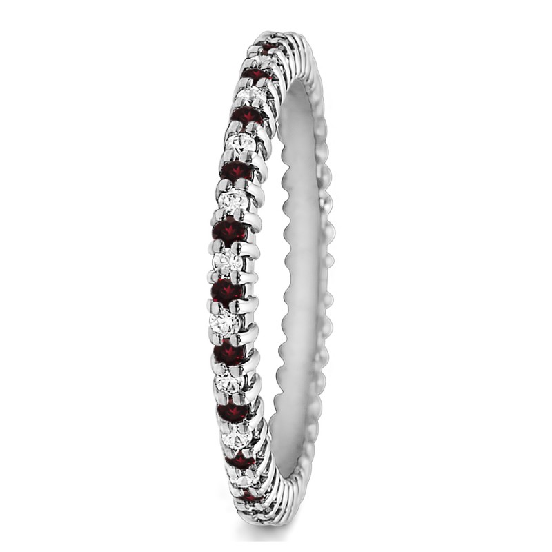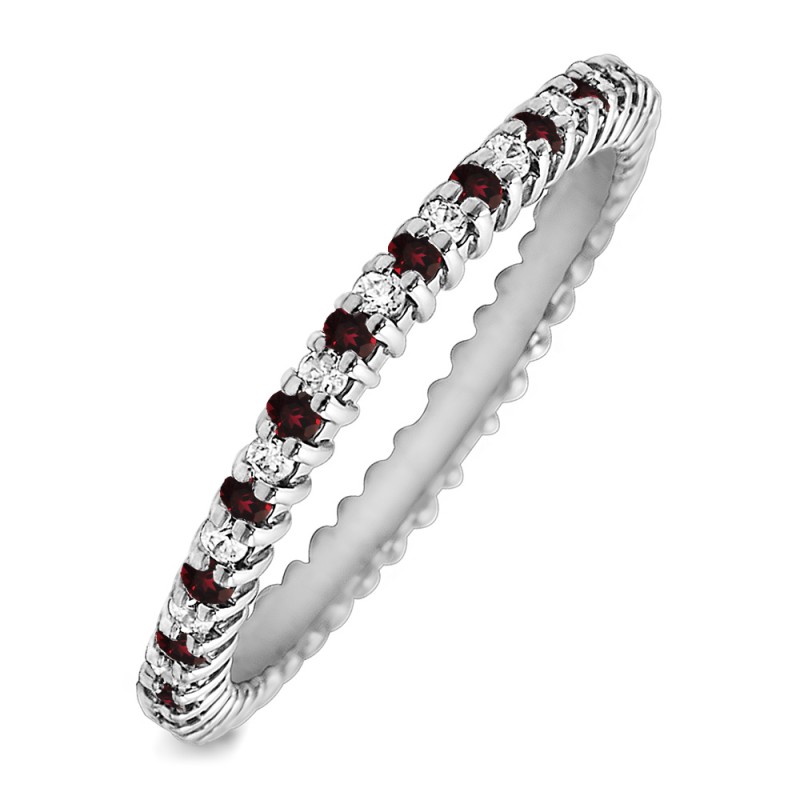 Ruby and Diamond Stackable 1.5mm Double Shared Prong Eternity Ring