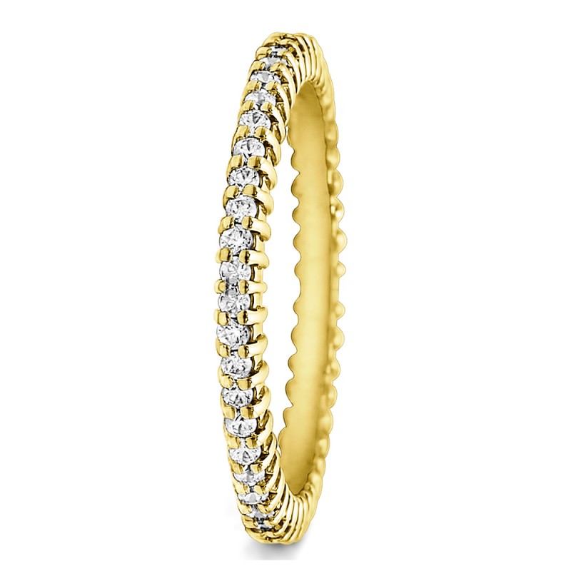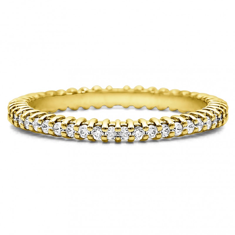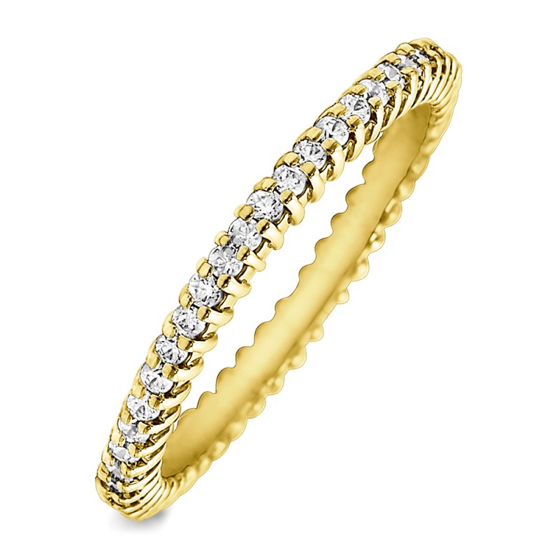 Key Product Features Each eternity band features round stones, all the way around. The millimeter size in the title determines the width of the stones. The larger the width, the higher the total carat weight.