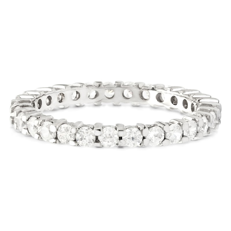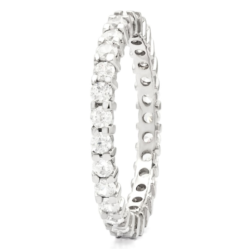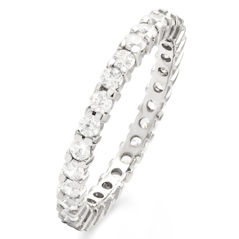 Key Product Features Each eternity band features round stones, all the way around. The millimeter size in the title determines the width of the stones. The larger the width, the higher the total carat weight.