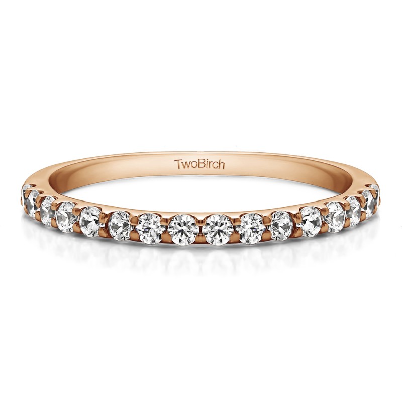 This wedding ring features 16 round prong set stones with a 2 millimeter wide band. The total combined carat weight of the ring is 0.48 carats. It has a high polish finish. This wedding ring weighs approximately 2.24 grams.